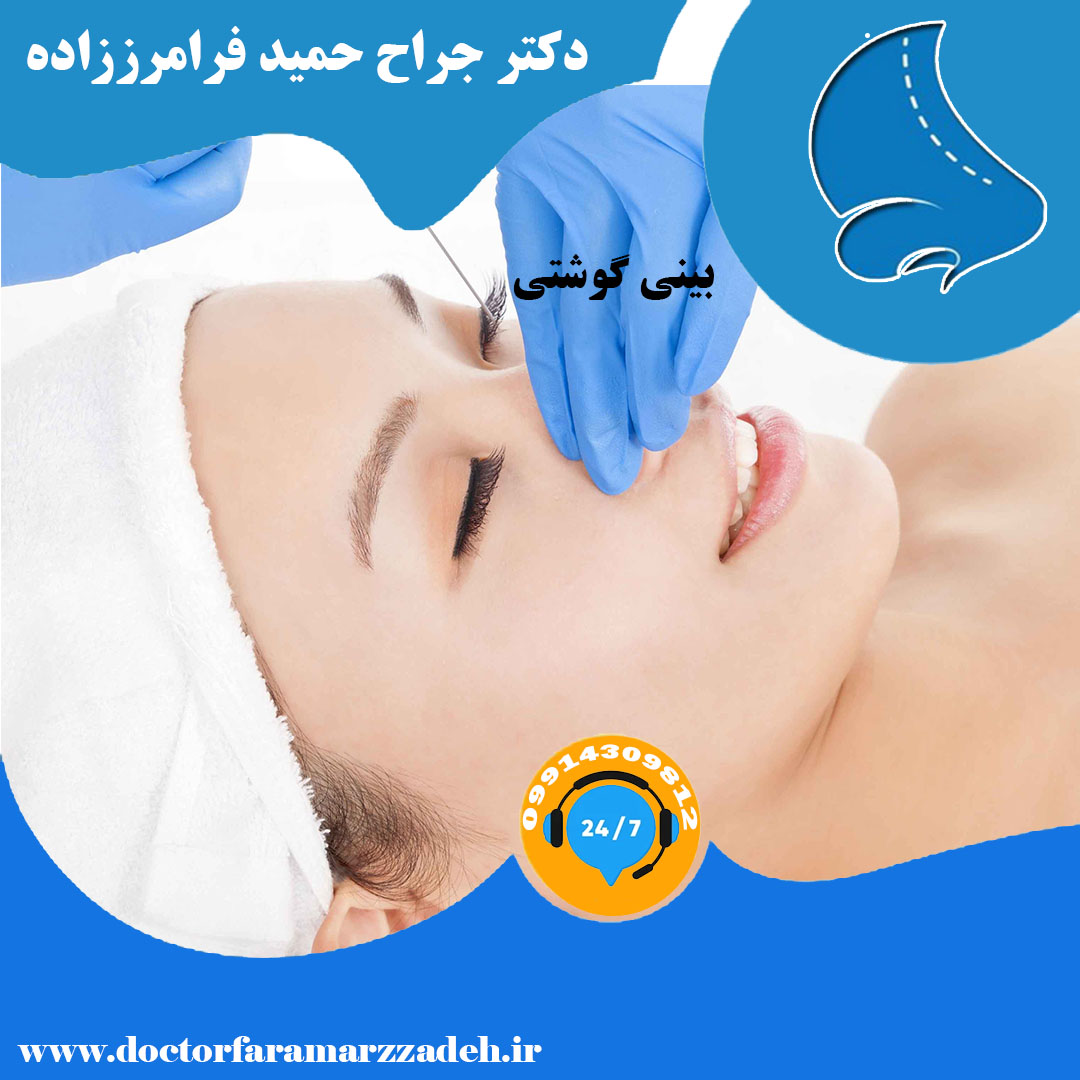 بینی گوشتی به بینی هایی گفته می شود که پوست ضخیم تر دارند، غضروف ها نسبتاً ضعیف تر و انعطاف پذیرترند و اغلب نوک بینی پهن تر یا افتاده بهنظر می رسد. این ویژگی ها نوع جراحی و نتیجه نهایی را تحت تأثیر قرار می دهند.